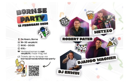 Sla een grote lunch op deze vrijdag maar over, want je wil hier graag met een lege maag aankomen. Geniet van de lekkerste gerechten van restaurants uit Borne, Hertme & Zenderen! Schuif aan, een borreltje erbij en genieten maar. Daarna ben je met een paar stappen op het Dorsetplein waar het feest nog tot 01:00 uur doorgaat!